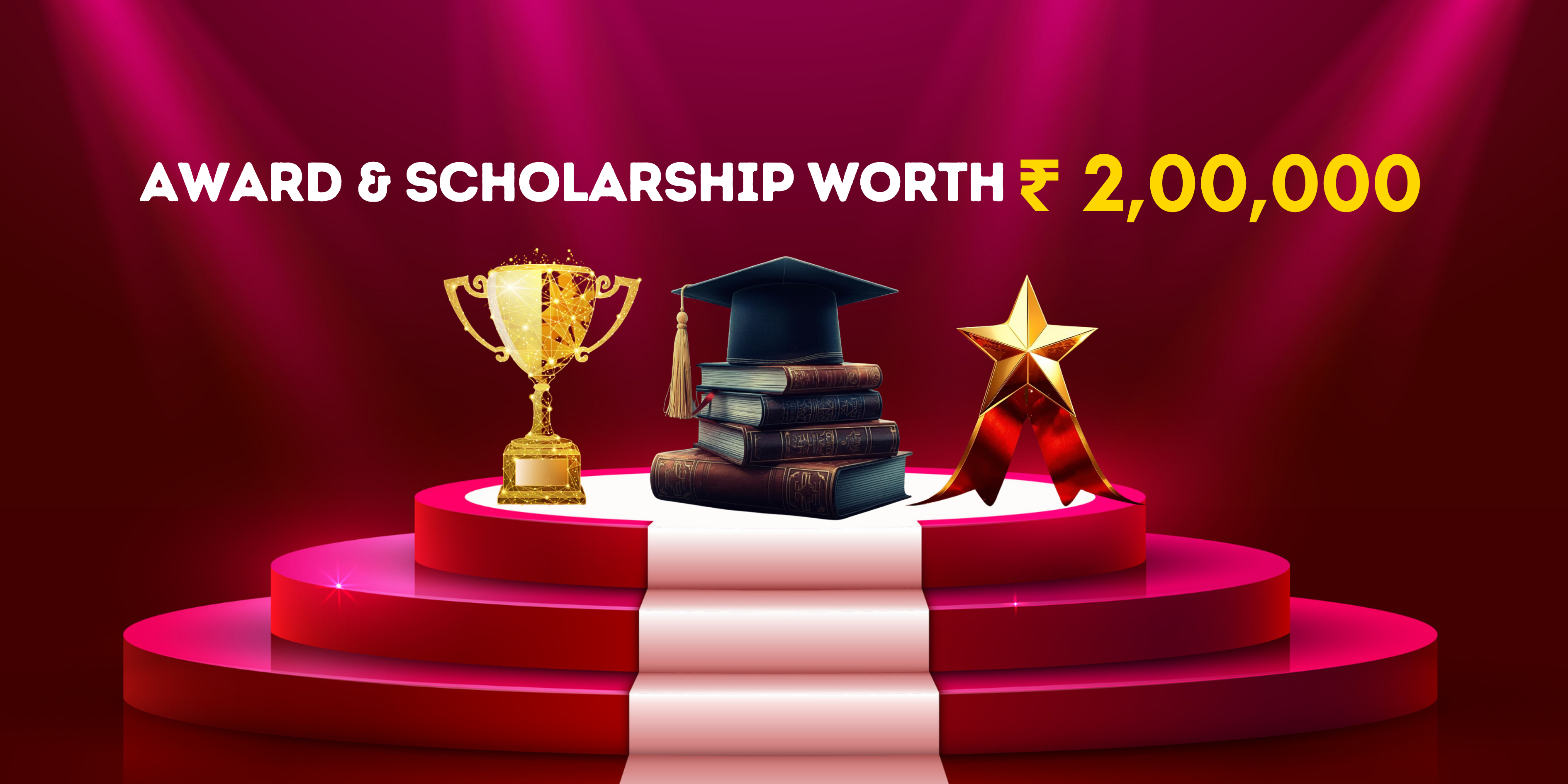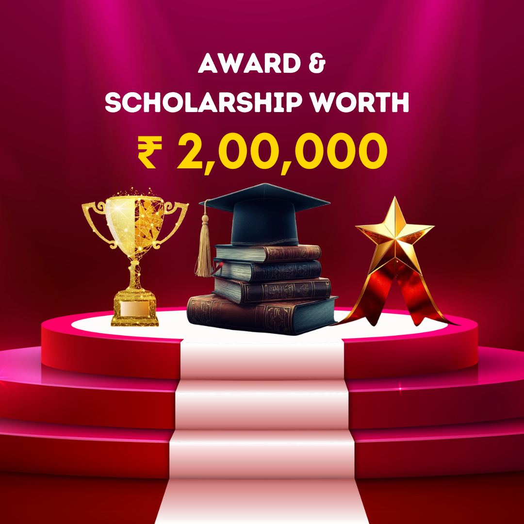 It means the total value of all scholarships combined is ₹2,00,000. Individual participants receive scholarships as per the category-wise distribution mentioned on the Scholarship & Award page.